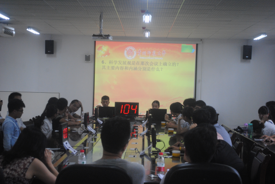赛前,主持人详细介绍了比赛规则和竞答题型。17个参赛队分A、B、C三个小组进行第一轮的淘汰赛,各小组取前两名进入决赛。其中竞答题型有个人必答题、团体抢答题、风险选答题三种。赛场里座无虚席,各参赛队准备充分,沉着应对,发挥了应有的水平。每一次准确的回答、果敢的抢答、机智的选答,都响起了热烈的掌声,同时缓解了比赛的紧张气氛。经过两轮角逐,最终2015级思想政治教育专业获本次竞赛一等奖,2013级历史学、2013级思想政治教育专业获二等奖,获三等奖的分别是2014级政治学与行政学、2015级公共事业管理、2015级历史学专业。