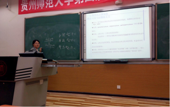 最先上场的是刘娑老师,她的参赛课程是《比较政府与政治》,授课的内容为“政治文化”。她在与员工的充分交流中从概念、类型、作用等方面详细地讲解了政治文化的相关知识,整个授课过程思维清晰、逻辑严密、表达流畅。