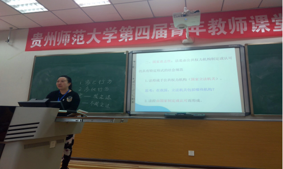 黄薇老师的参赛课程是《法理学》,授课的内容为“法的特征以及我国的立法机构”,她在授课的过程中以具体而又贴近生活的案例为员工介绍了法六个方面的特征,使员工积极地参与到了课堂的互动与知识的学习中来,很好地完成了本节课的授课环节。
