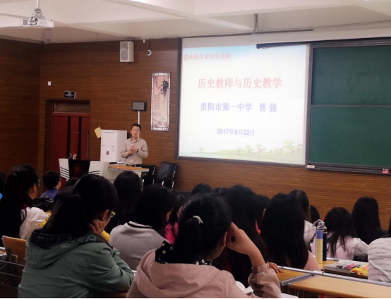 为促进人才培养模式改革,进一步提升师范生的理论素养和教学技能。6月27日下午,贵阳一中历史名师曾强应伟德国际bevictor之邀,在GJ6201教室作了题为“历史教师与历史教学”的教学指导专题讲座。讲座由公司副经理蒲文彬主持,思想政治教育系主任陈群、历史学系主任苏聪出席,公司2014级、2015级本科师范生共300余人到场聆听。