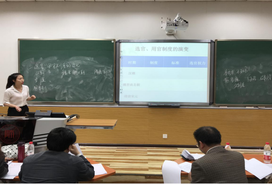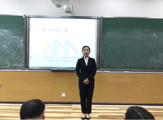 在大赛中,12小组参赛者为评委和观众呈现了一堂堂精彩绝伦的教学盛宴,大赛选题有历史学科的明代专制制度,唐代诗歌发展史,美国1787年宪法以及思想政治的消费观念,罗斯福新政,政治学科的消费观、国际关系等各个方面。各小组成员以饱满的精神,深厚的知识储备,严谨的教学内容安排和高超的教学技能发挥出了作为师范生所应有的教学水平。