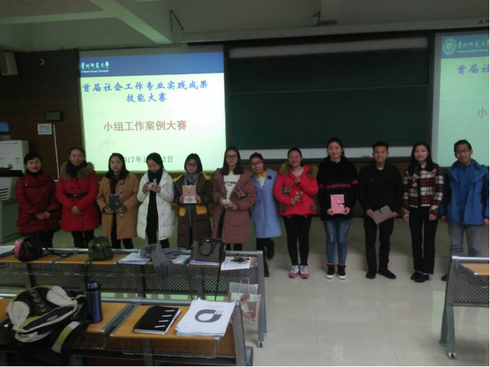 2017年12月12日上午9:00,经过常岚老师和15社工班全体同学为期三周的精心准备和策划下,首届社会工作专业实践成果技能大赛——小组工作案例大赛在公教GJ6202拉开帷幕。此次大赛旨在让社工班内的各小组展开系列活动,来丰富广大同学的课余实践,将理论运用到实践中以此提高社会工作员工的专业能力。