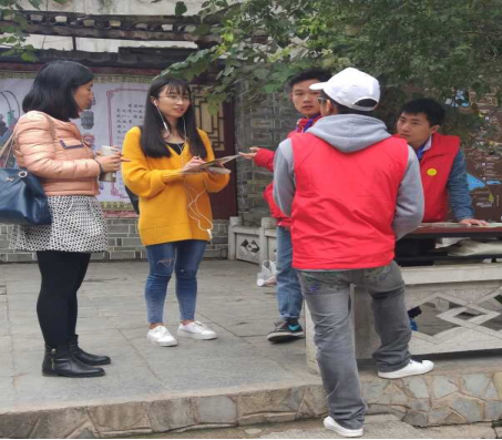上午9时许抵达后,按照既定方案,各小组有条不紊地进入青岩古镇景区的各个景点,开展为期一天的志愿服务工作。志愿者们于寒风中依旧笑容满面,为来往游客送去一份力所能及的温暖,积极耐心地为游客提供各项服务,如悉心指路、告知公交路线;提醒游客不要翻越围墙,采摘花草;搀扶老弱病残等人员过马路;劝导游客不要在景区吸烟、乱扔垃圾等。