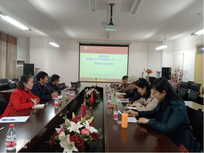 10月18日下午新疆社会科公司新疆中国特色社会主义理论体系研究中心郭泰山主任携调研组一行五人到公司进行交流考察,公司副经理陈华森及教师李红军、罗竖元、常岚参加了此次交流座谈。