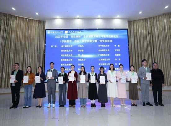 2025年12月5日至7日,2025年全国“田家炳杯”全日制教育硕士专业学位研究生(学科教学·思政)教学技能大赛决赛暨人才培养高峰论坛在江西师范大学顺利举行。伟德国际bevictor学科教学(思政)专业研究生积极参与、表现出色,在比赛中斩获两项奖项。其中,2024级学科(思政)硕士研究生向杨英子同学荣获全国一等奖,充分展现了出色的教学素养与综合能力,2023级学科(思政)硕士研究生林双影同学凭借优秀的教学设计能力,荣获“优秀教学设计奖”。