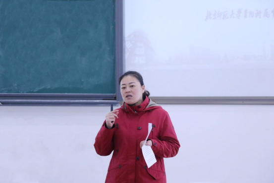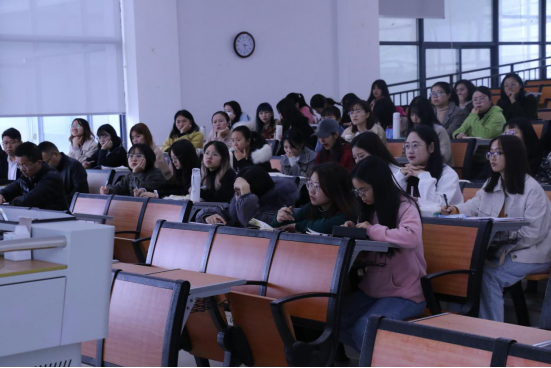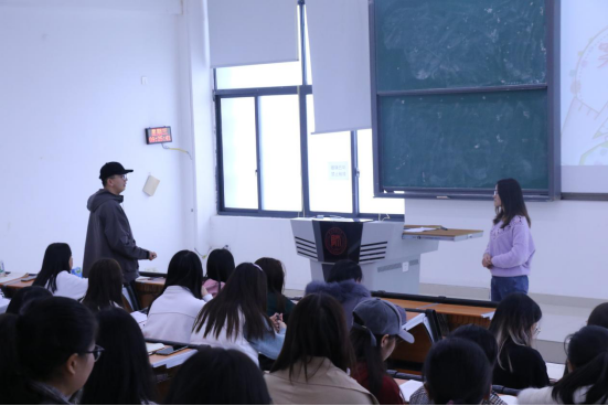 随后,穆洋老师就《因爱而共,因情而应》的主题开始了她的讲述。她衔接汤老师分享的案例说了自己的观点,并且提出班主任在治理班级时要有气势和威慑力的观点,同时还传授了自己管理班级的方式,以便同学们在日后的工作能够有个参考,接着穆老师对同学们在工作上提出了三点要求:一、尽快转变角色;二、在心理上进入教师角色;三、在态度上尊重教师职业。最后,她对同学们今后的工作提出希望和表示期待。