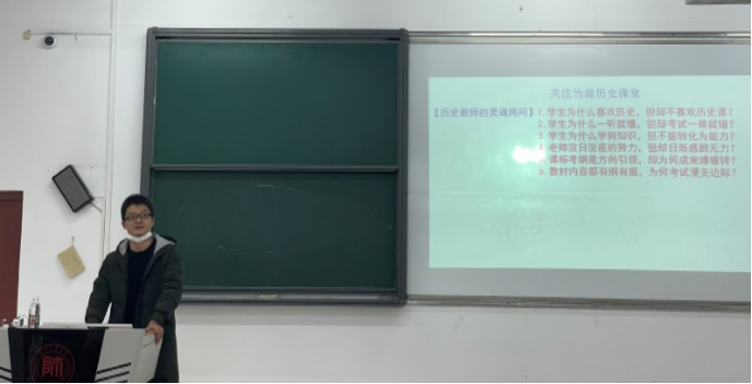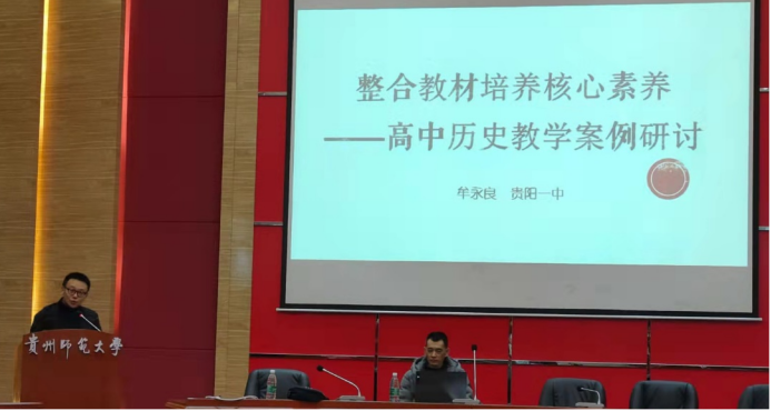 2021年10月21日上午,历史系有幸邀请到贵阳一中骨干历史教师牟永良老师于在GJ6101举办“整合教材培养学科核心素养—高中历史教学案例研讨”为主题的历史教学系列讲座,王雅克老师主持本次讲座。