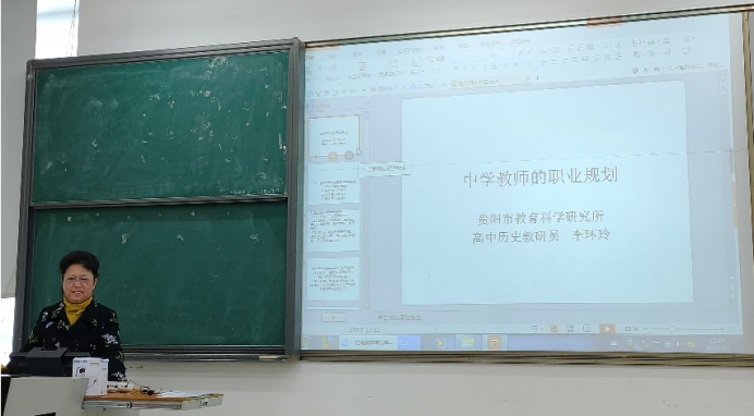 历史系有幸邀请到了贵阳市教科所高中历史教研员,中学正高级教师李环玲老师于2021年10月29日上午9:00在GJ2521举办了“中学历史教师的职业生涯规划”为主题的历史教学系列学术讲座,本次讲座由系主任苏聪老师主持。