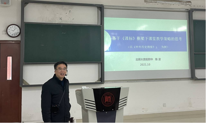 在新课标下,我们应做出怎样的课堂教学策略的改变?如何转变教学观念?如何进行历史教学?围绕一系列的问题,历史系有幸邀请到了北师大贵阳附中教师陈波老师于2021年10月26日上午9:00在GJ5101举办了“基于《课标》框架下实施课堂教学策略的思考(以《中外历史纲要》上的课文为例”为主题的历史教学系列学术讲座,本次讲座由段红丽老师主持。