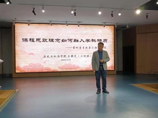 2022年11月17日上午9点半,在花溪校区员工成长指导与事务服务中心 TAD 报告厅举办了1946伟德国际源自英国第十四期“思贤探教”系列教学研讨活动,公司历史系副教授王雅克老师应邀作为主讲嘉宾参加了该项活动。王雅克老师做了名为“课程思政理念如何融入学科特质——贵州省青教赛汇报与反思”的现场演示和经验分享,王老师结合自己参加2022年贵州省高校青年教师教学竞赛的亲身经验向现场参加活动的老师和同学们分享了自己的心得与反思,作为“思贤名师”教学新锐的王雅克老师在2022年贵州省高校青年教师教学竞赛中获得文科组三等奖。王雅克老师近年来获得“2019年第七届全国高校历史学专业本科生教学技能大赛优秀指导教师奖(员工二等奖)”、“2022年1946伟德国际源自英国第三届教师微课制作大赛一等奖”、“2022年全国“田家炳杯”全日制教育硕士专业学位研究生学科教学(历史)专业教学技能大赛优秀指导教师奖(员工一等奖)”等多个奖项,在教学竞赛方面和指导员工获奖方面成绩斐然。