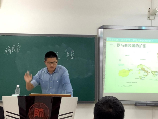 王兴锋老师公开课主要讲授“隋朝的‘国富’与‘国祚短促’”及唐朝的建国,王老师首先分析了隋朝短期迅速致富的原因、隋朝二世而亡的原因和教训,接下来又讲述唐朝开国的过程,分析了贞观之治的正反两面的不同解释。王老师语言精练幽默,分析透彻,授课条理清晰,课堂气氛和师生互动较好。