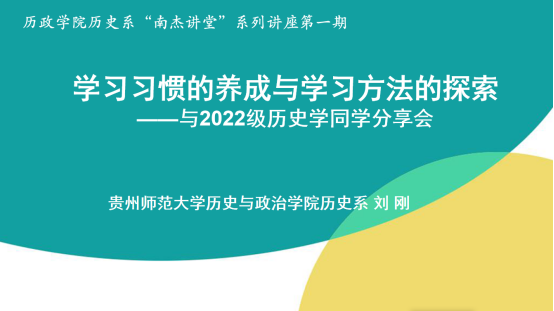 2022年11月26日(周六)下午,公司历史系主任刘刚老师为2022级历史学同学们做了一场名为“学习习惯的养成与学习方法的探索——与2022级历史学同学分享会”的讲座,这是“南杰讲堂”系列讲座的第一期。由于近期疫情影响,2022级历史学全体员工在线上参加了本次讲座。